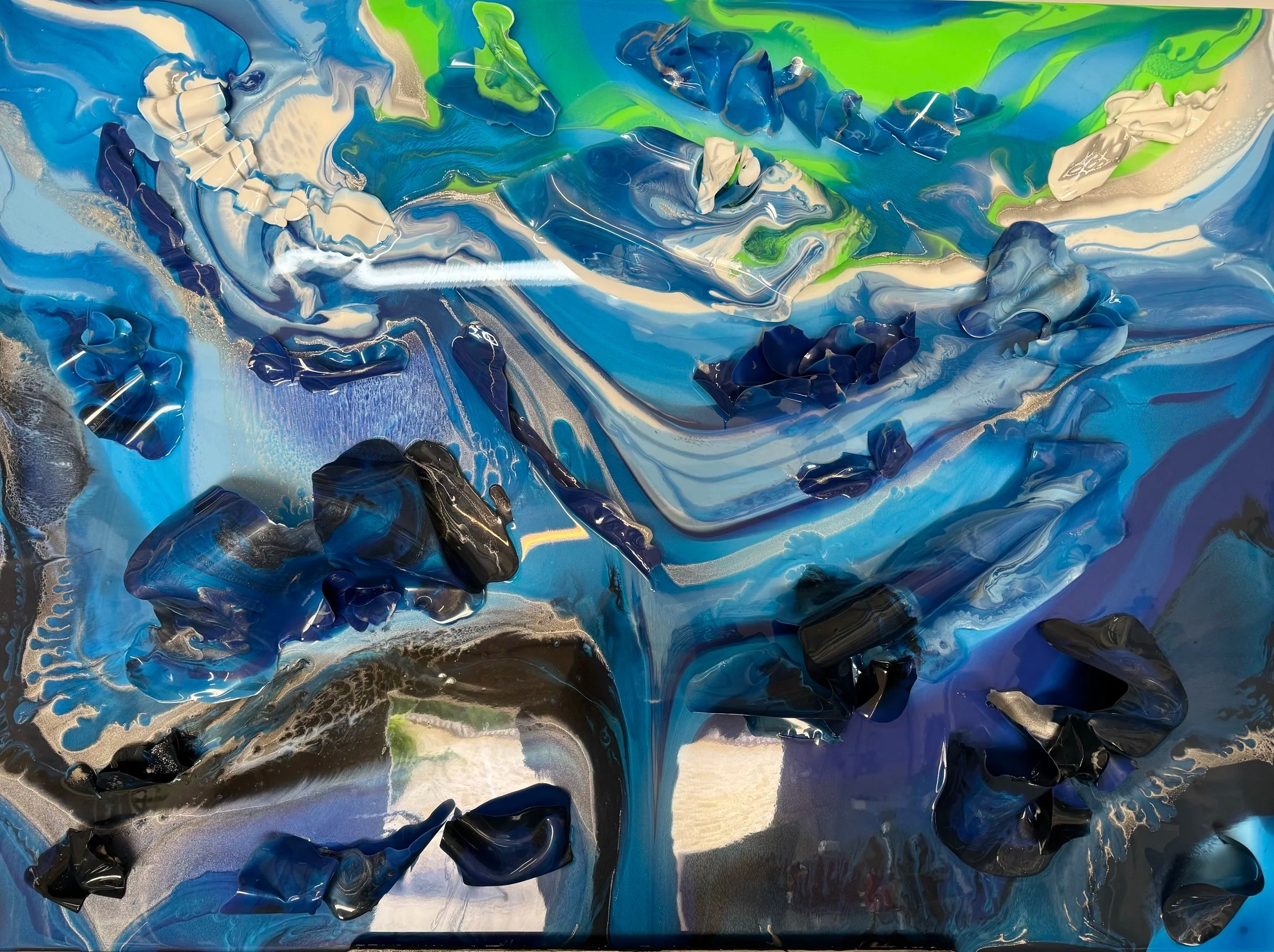 Lucent Forms: Water. 2024. 150cm x 110cm x 20cm. Epoxy Resin on acrylic. Mounted.